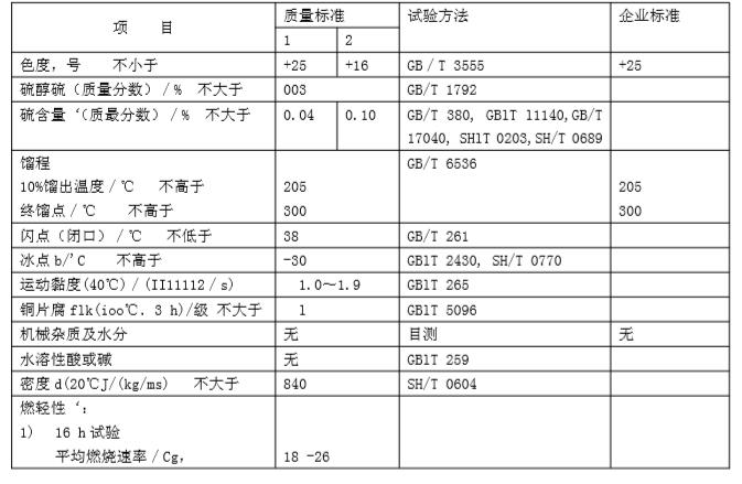 煤油的質(zhì)量要求