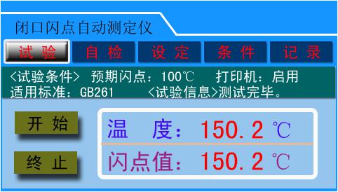儀器按照ASTM D93、GB/T261-2008方法規(guī)定的升溫曲線加熱,溫度接近閃點值時自動點火,當出現(xiàn)閃點時儀器自動鎖定顯示打印結果,同時自動對加熱器進行冷卻。